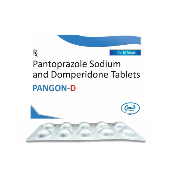 Pangon-D Capsules are formulated to provide effective relief from acid-related digestive disorders. Pantoprazole 40 mg, a proton pump inhibitor, reduces excessive stomach acid, helping to relieve symptoms of heartburn, acidity, and gastroesophageal reflux disease (GERD). Domperidone 10 mg, a prokinetic agent, improves gastric motility, reduces nausea, vomiting, bloating, and promotes faster digestion. Together, this combination provides comprehensive digestive comfort, supports healing of esophageal irritation caused by excess acid, and enhances nutrient absorption. Regular use under medical supervision can help manage chronic acid reflux, prevent discomfort after meals, and improve overall digestive health and quality of life.