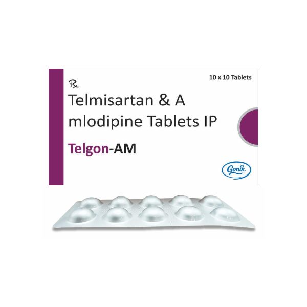Telgon-AM combines Telmisartan, an angiotensin II receptor blocker, with Amlodipine, a calcium channel blocker, to effectively manage high blood pressure (hypertension). Telmisartan helps relax blood vessels and reduce vascular resistance, while Amlodipine improves blood flow by relaxing arterial muscles. Together, they help lower blood pressure, reduce the risk of heart attack, stroke, and kidney damage, and improve overall cardiovascular health. Regular use under medical supervision helps maintain optimal blood pressure levels, enhances heart function, and supports long-term cardiovascular wellness. This combination therapy is especially beneficial for patients who need dual action to achieve effective blood pressure control.